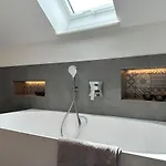 Tot de badkamerfaciliteiten behoren ook een apart toilet, een badkuip en een douche. Een haardroger, badjassen en handdoeken zijn inbegrepen voor extra comfort.